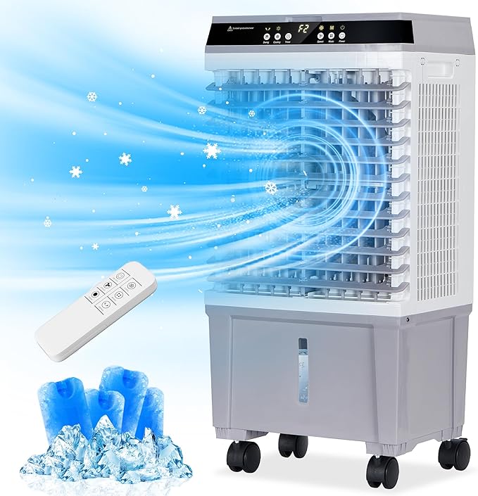 Designed with convenience and comfort in mind, this cooler features a 5.3-gallon water tank, 4 ice boxes, 3-speed settings, 120° oscillation, remote control, and a 12-hour timer, making it the ideal solution for bedrooms, living rooms, home offices, and any room that needs quick, customizable relief from the heat.
