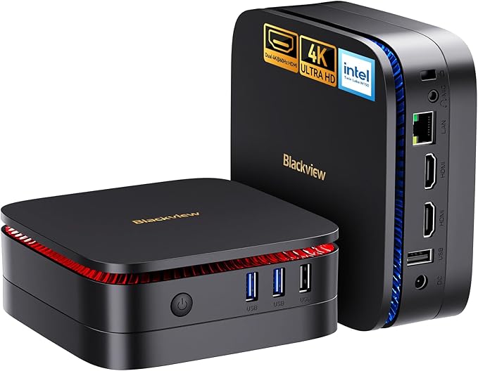 When it comes to finding the right balance between performance, space-saving design, and affordability, the Blackview MP60 Mini PC stands out as a solid choice. Built for both home and office use, this ultra-compact desktop delivers powerful performance in a sleek form factor that fits easily into any workspace. With features like dual 4K HDMI, Wi-Fi 5, and a generous 3-year warranty, it provides both reliability and efficiency for users who need a dependable computer for everyday tasks and beyond.Compact Yet Powerful DesignThe Blackview MP60 is designed to deliver big performance in a tiny package. At its core, it runs on the Intel N150 processor, ensuring smooth operation for multitasking, office applications, and daily computing needs. With 16GB DDR4 RAM and a 512GB SSD, the system offers fast boot times, responsive performance, and plenty of storage for documents, media, and essential software.Ultra-Compact and Space-SavingOne of the biggest advantages of this mini PC is its compact size, which makes it ideal for users with limited desk space. The unit can be easily mounted using the included VESA mount, allowing you to place it behind a monitor or under a desk for a clutter-free setup. Its discreet design ensures it blends seamlessly into any environment, whether in a home office or professional workspace.Smooth Graphics and Dual 4K DisplaysFor professionals and entertainment enthusiasts, the Blackview MP60 supports dual HDMI outputs with 4K resolution. This makes it easy to set up dual-monitor workstations, boosting productivity for tasks such as video editing, data analysis, and multitasking. The high-resolution support also ensures crisp visuals for streaming, presentations, and casual gaming.Connectivity and CoolingEquipped with Wi-Fi 5, the MP60 ensures a stable and fast wireless connection, while multiple ports offer flexibility for connecting peripherals, external drives, and accessories. The device also features a big fan system designed to keep the PC cool and quiet during extended use, making it suitable for long working hours.Ready for Business and HomeRunning on Windows 11 Pro, the Blackview MP60 comes pre-installed with the latest features for security, productivity, and user experience. It is well-suited for office professionals, students, and home users who want a reliable machine without the bulk of a traditional desktop.Long-Term ReliabilityUnlike many compact PCs on the market, the Blackview MP60 includes a 3-year warranty, providing peace of mind for users who want a long-lasting and dependable device. This warranty underscores the brand’s confidence in the durability and performance of its product.ConclusionThe Blackview MP60 Mini PC is a versatile and compact computing solution designed for both home and business needs. With its powerful specs, dual 4K display support, efficient cooling system, and extended warranty, it offers excellent value for those seeking performance without the clutter of a traditional desktop tower. Whether for office productivity, home entertainment, or daily use, this mini PC is built to handle it all with ease.